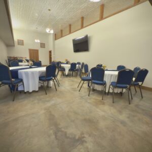 The Main Hall is the centerpiece of Venue 1922 — one of the most versatile event spaces in Stroud. This spacious room sits beneath the original tin-tile ceiling, giving every celebration a touch of historic elegance. Designed to adapt to your vision, the Main Hall accommodates round or rectangular tables for ceremonies, dinners, meetings, and community events.